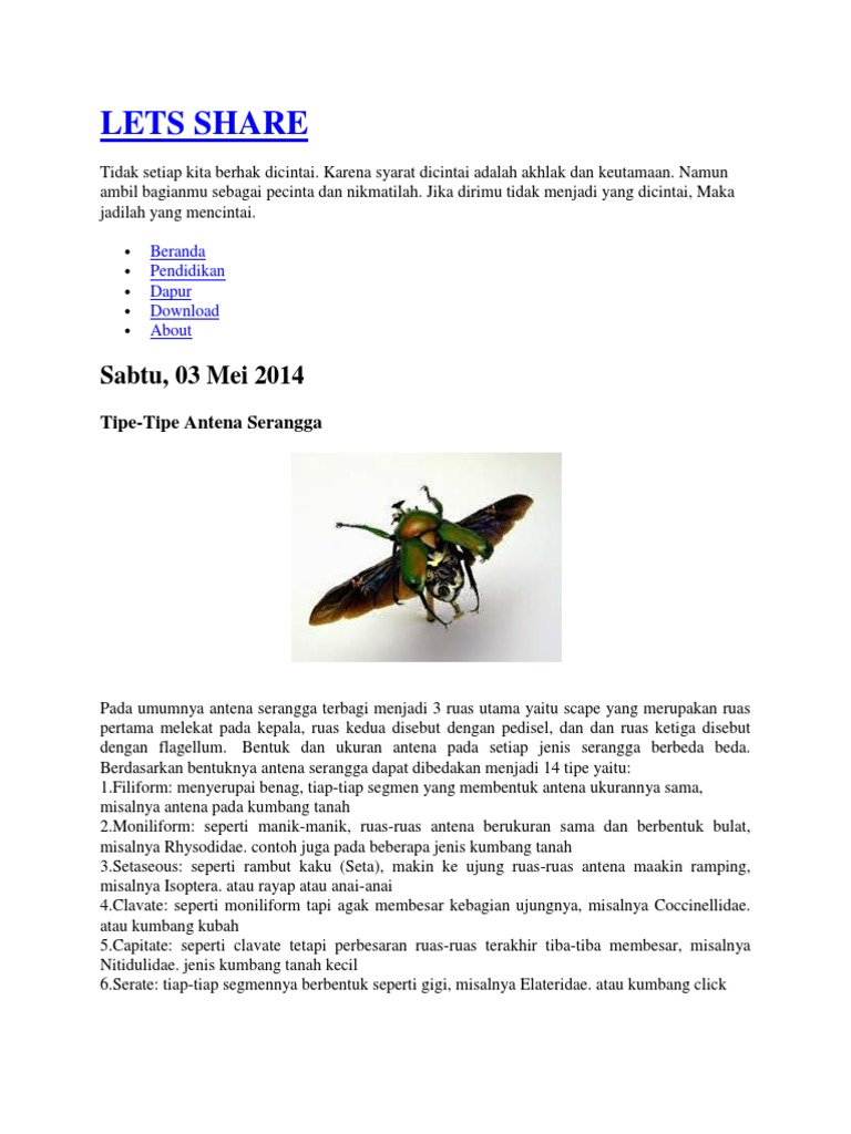 . Kumbang 99 juta tahun tersimpan dalam ambar di Myanmar Ciri-ciri Serangga - Mengenal 13 Bentuk Antena Serangga - Dunia Serangga yang Menakjubkan Info Lengkap Ciri-ciri dan Harga Kumbang Tanduk di Pasaran | Daftar Harga & Tarif